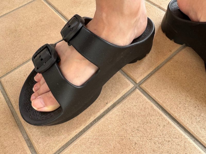 なぜ、おじさんがW-BUCKLEを選んだかと言うと、テリックのサンダルの中で一番脱げにくいと思ったからなんだ。大きなWバックルは甲の高さに合わせてフィット感を調節できる。